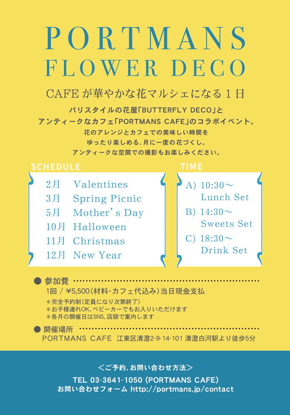 ※ポートマンズカフェでは随時イベントやワークショップを受け付けております。 お気軽にスタッフまたは、お電話やメールでお問い合わせください。 尚、企画内容によってはお断りする事もございますので、あらかじめご了承ください。